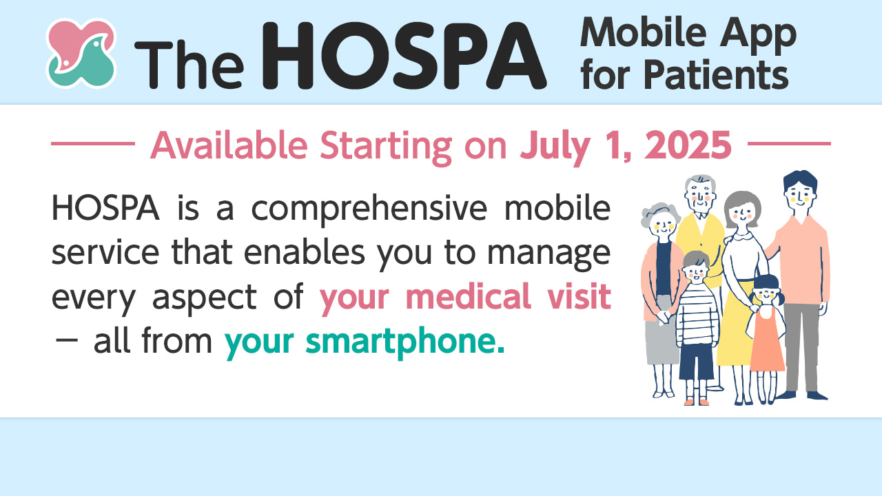 Appointment reservations: You can make appointments through our official hospital website or via our dedicated hospital app, “HOSPA.”