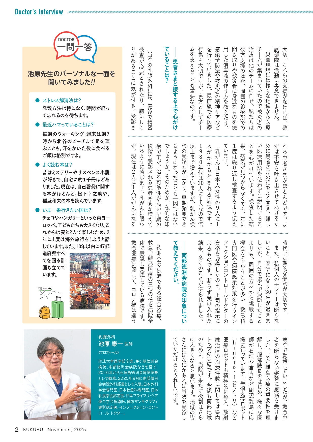| 資格・専門医 | 日本外科学会専門医 日本救急科専門医 日本乳癌学会認定医 日本プライマリ・ケア連合学会指導医 健診マンモグラフィ読影認定医 インフェクション・コントロール・ドクター |