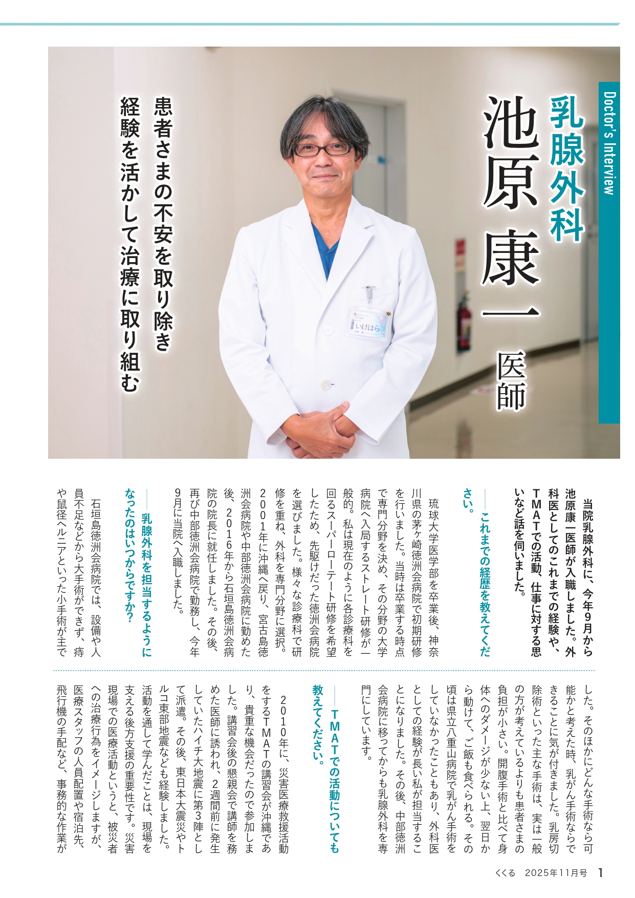 | 資格・専門医 | 日本外科学会専門医 日本救急科専門医 日本乳癌学会認定医 日本プライマリ・ケア連合学会指導医 健診マンモグラフィ読影認定医 インフェクション・コントロール・ドクター |